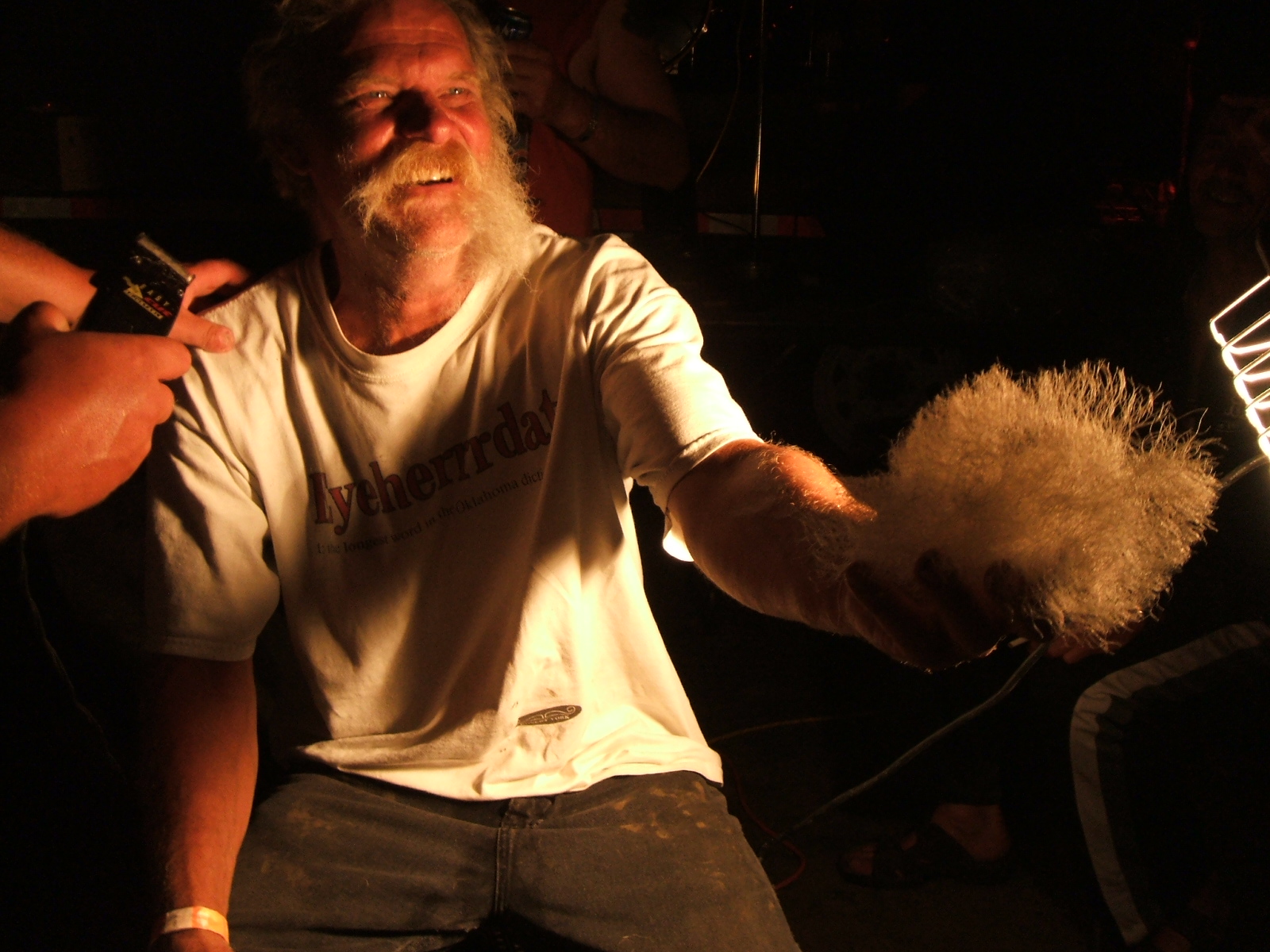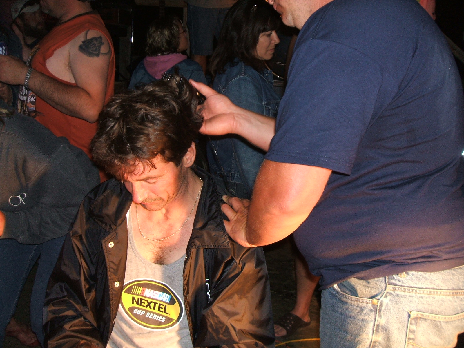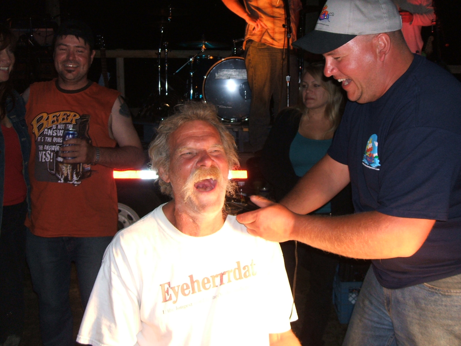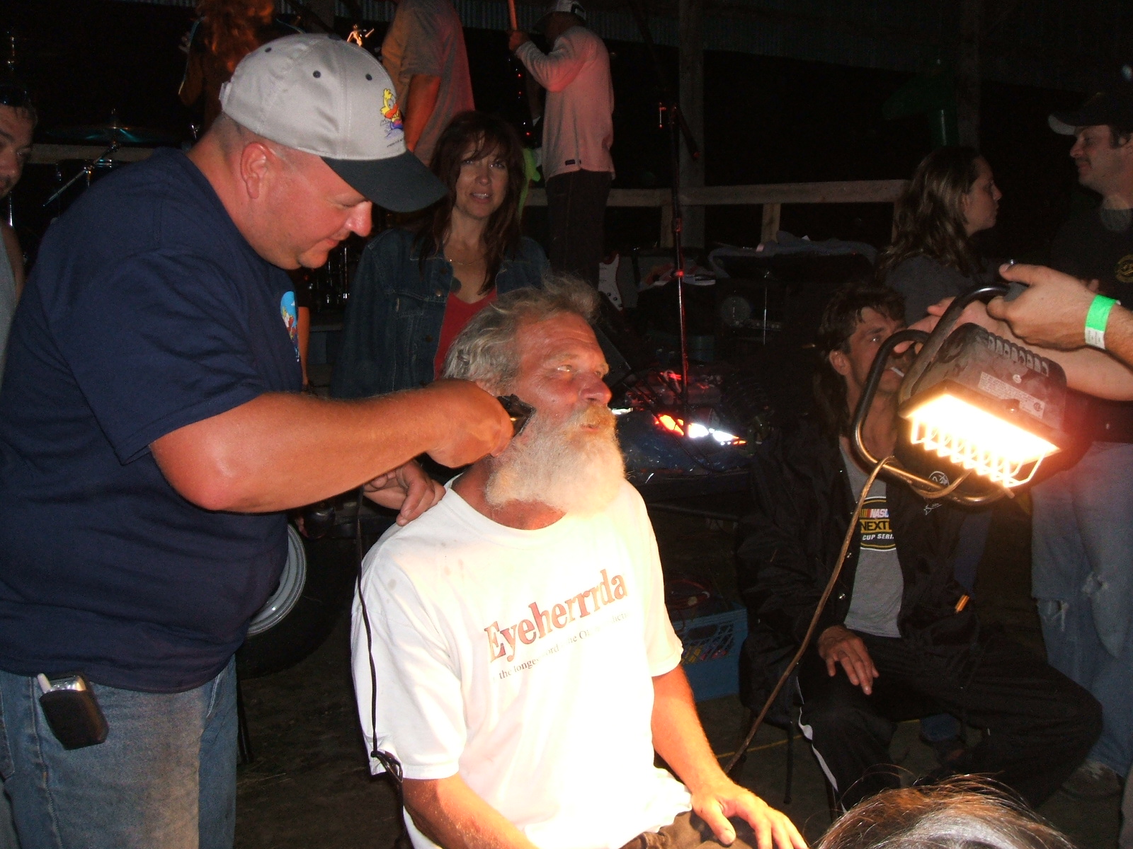 The weather was kind enough to cooperate for us anyway. We did have a little shower pass through in the late afternoon. Unfortunately it was while they were trying to do dance lessons, but we had some troopers that stuck it out anyway. Our grand total for the Children’s Wish donation was $800. We were down from last year overall but at least it is better than nothing. We only served 60 suppers, whereas last year we did 125. We had more campers here than last year, but we didn’t get much for day traffic. We had about 30 or so kids take part in the games. The silent auction was a popular thing as always. We had one lucky site that won 3 prizes so I don’t think they were too popular among the non winners. The 50/50 pot was a record one – over $200. We also had an unexpected activity added during the day. We had a mullet cutting and Santa beard shaving.