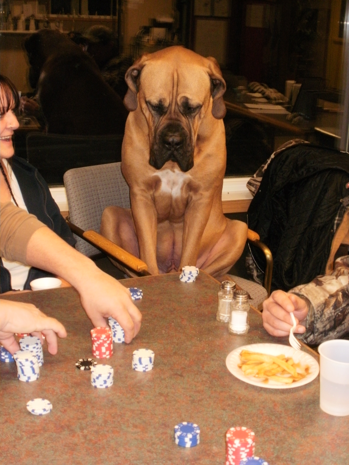 I would like to introduce you to one of our diehard poker players. He has been to every poker night so far. He is a tough player to come up against since it is hard to read his poker face.