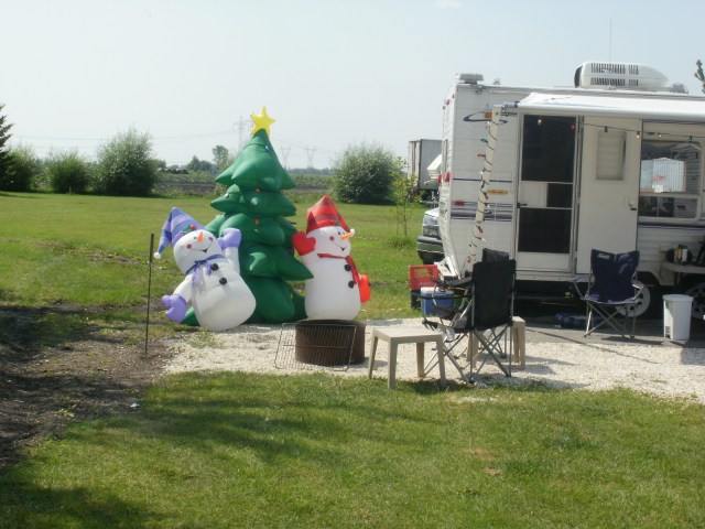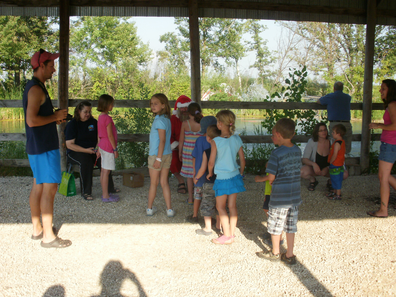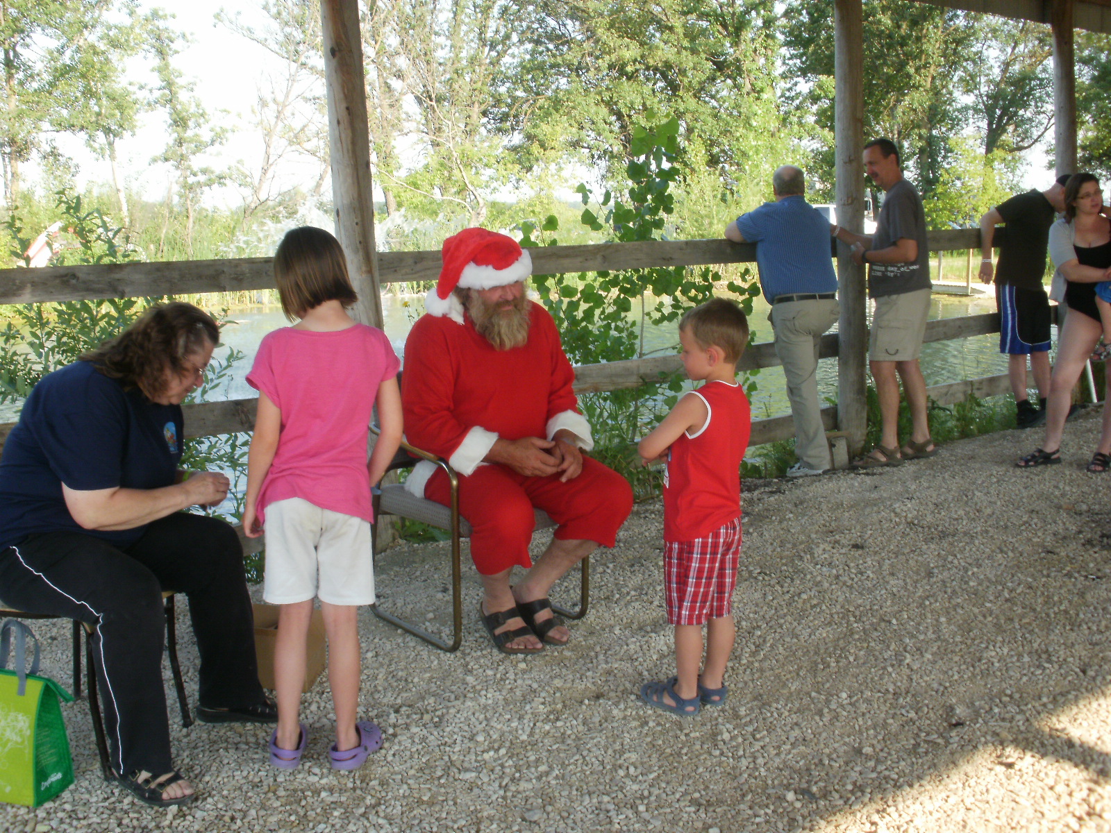 This past weekend was our first Christmas in July at the Duck and it went over all right. It really is hard to get into Christmas when it is pushing 30C outside. We did have a few people that found the spirit and decorated their campsites. I even saw a grinch hanging around at one site. We even managed to find a volunteer that was willing to put on a Santa suit in this heat. Thanks so much to Robin for being our Santa. We set him up in the shade of the picnic shelter and had probably around 2o kids come to visit.