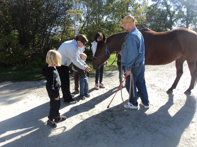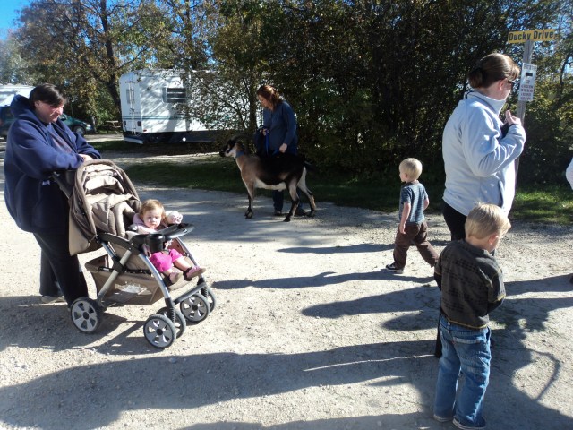 A big thank you to our neighbors, Chris and Dave, who came for a walk with Crash and Snuffy. This was the first time that Crash (the goat) had been on a leash or even off their property and he did quite well. Everyone got a chance to give them a little pet and a treat of fresh grass. The rest of Open Farm Day also went quite well. I lost track, but think we probably had about 25 carloads of people come out. It was a benefit having another farm within a mile of us. Pretty much everyone that stopped here was also stopping down the road at Riddell’s. I have seen some reports that this will become an annual event, so we will have to start thinking up some new ideas for next year.