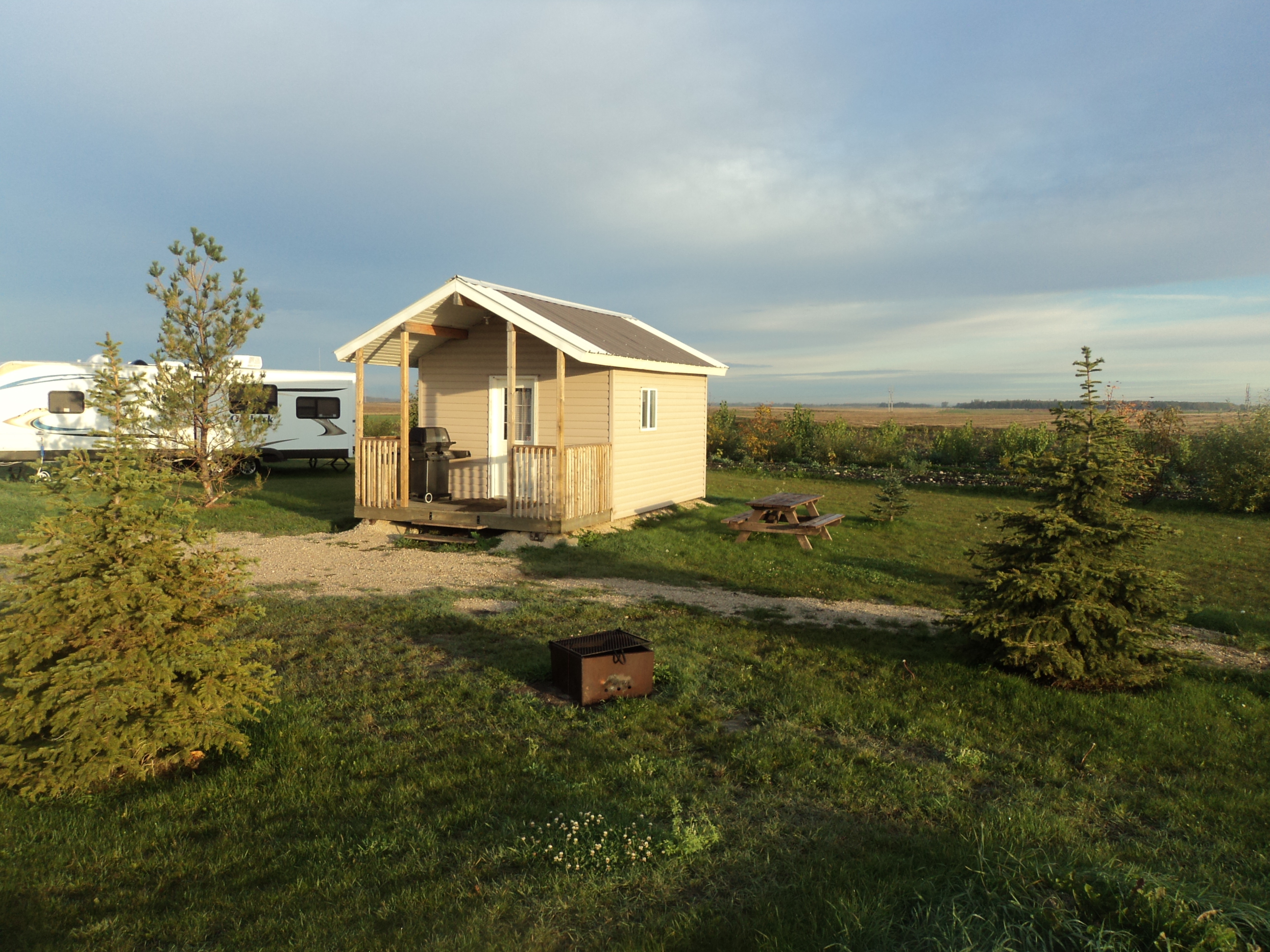 If you are looking for a back to basics getaway we are offering a 2 night stay in our camping cabin for $74.99. Our cabin has a picnic table, BBQ, fire pit and 6 foot covered deck perfect for relaxing and gazing at the stars. Each cabin is equipped with a double bed, bunk beds, table, and bar fridge.