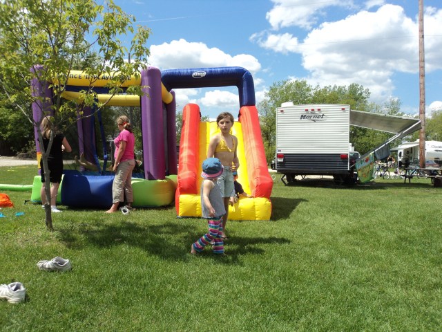 The last two times I have scheduled the bounceroo we got completely drowned out with monsoon rains, so I was a little nervous when I rescheduled to this weekend. Fortunately the bounceroo bad luck streak was over and the sun shone and rain stayed away. The kids were able to get in a couple hours of bouncing fun.