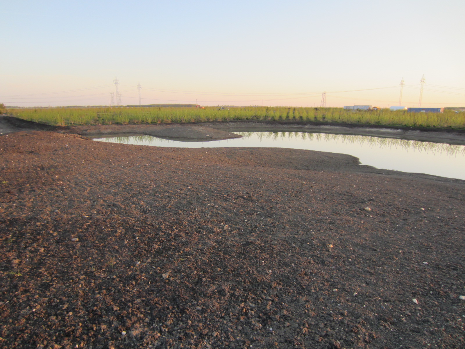 Then you clean it up. This is the view from the hill looking down on one of the lakes. Not quite full yet, but it is coming along nicely.