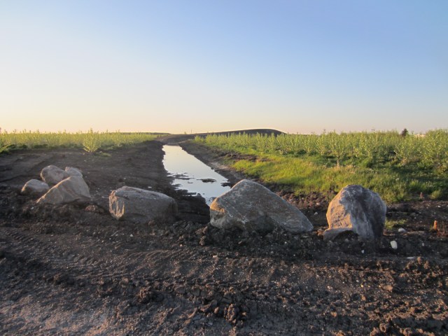 I have had a few people asking for an update so I figured it was time to take advantage of a sunny day and head out to the new campsites with my camera in hand. Other than grass growing and leaves coming out there hasn’t been a lot going on over the last week or so. Mother nature has had a small hand in that, but hopefully she has fixed the leak in her plumbing and adjusted her thermostat. As you will see from some of the pictures it was still not completely dry yet. It made for a good workout though with some mud weights added to the bottom of my shoes. I may be slightly biased, but these sites are turning out even better than we had planned. As the saying goes, the pictures just don’t do it justice though. You need to come out and listen to the birds and the frogs as you walk around and experience the transformation for yourself. Although we had a vision of how these sites would turn out when they were completed it isn’t until we get to this green grass stage that you can walk out there and just say “Wow”. Keep in mind as you follow us on this expansion journey it was only 2 short years ago that the whole area was wide open field with not a tree in sight. I have tried to keep a timeline by taking similar pictures each time I go out. The before pictures were taken in mid to late April.