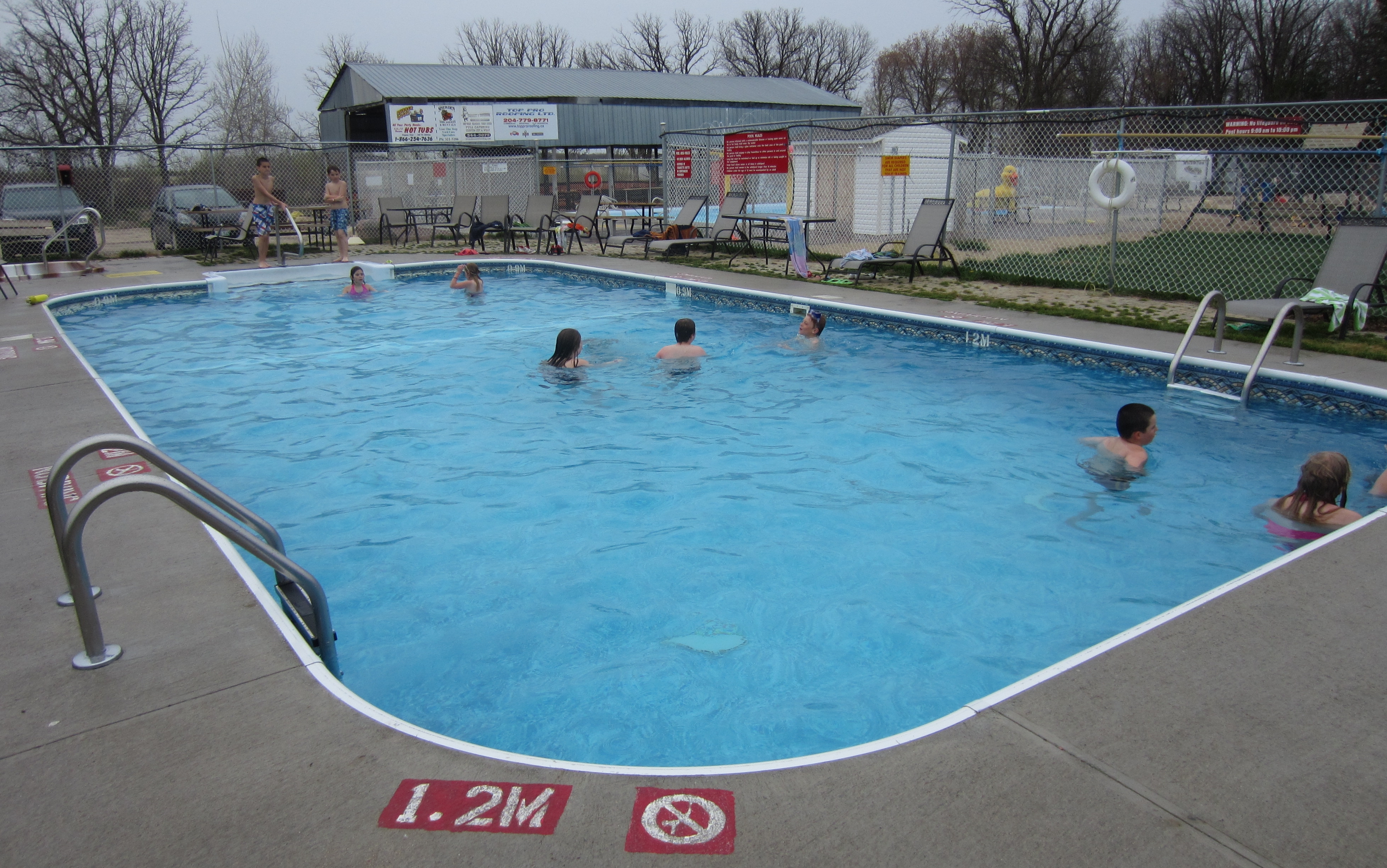 This pool won’t be heated for a couple weeks, so it is only about 65F. This was the “I dare you” pool. But as you can see some of the made it in. A brave few even made it down the Ducky slide.
